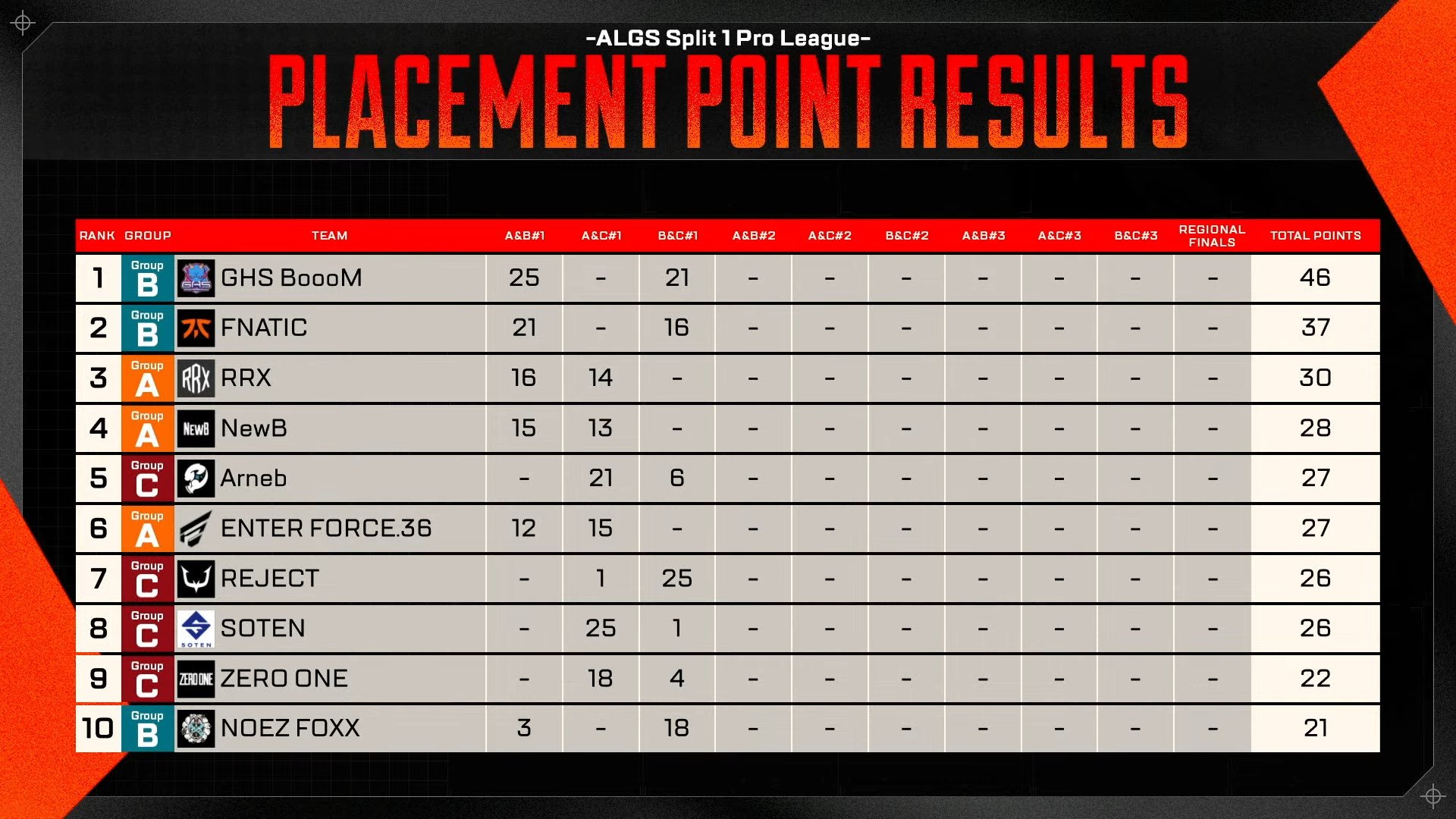 前半戦はSOTEN/後半戦はREJECTが首位奪取 ALGS YEAR5 SP1 プロリーグWEEK2が本日行われました。 前半戦は予選を勝ち上がったSOTENが1位を獲得 新興チームが勢いを見せました。 後半戦はREJ…