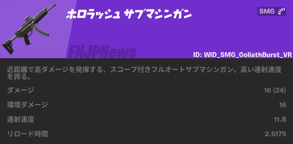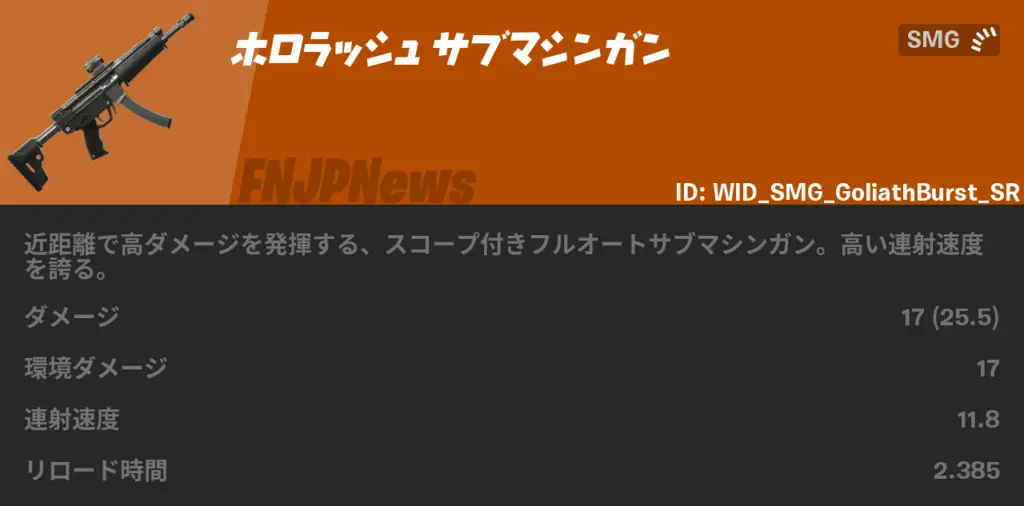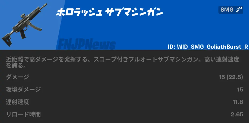 The post 【フォートナイト】「ホロラッシュ サブマシンガン」性能まとめ first appeared on フォートナイト 攻略情報サイト | FNJPNews.