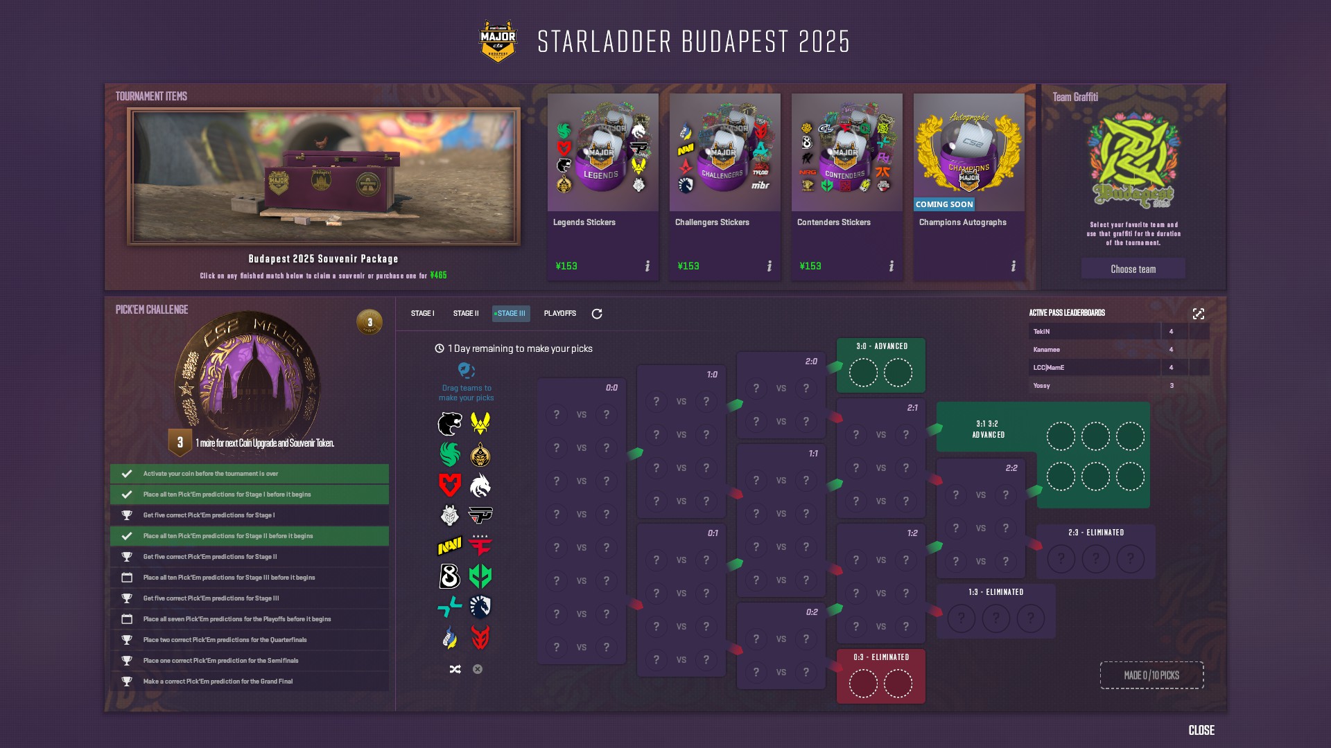 Stage II of the @StarLadder_CS Budapest Major has concluded. Picks for Stage III of the Pick’Em Challenge are now live in-game! pic.twitter.com/gPyNnIVtCy