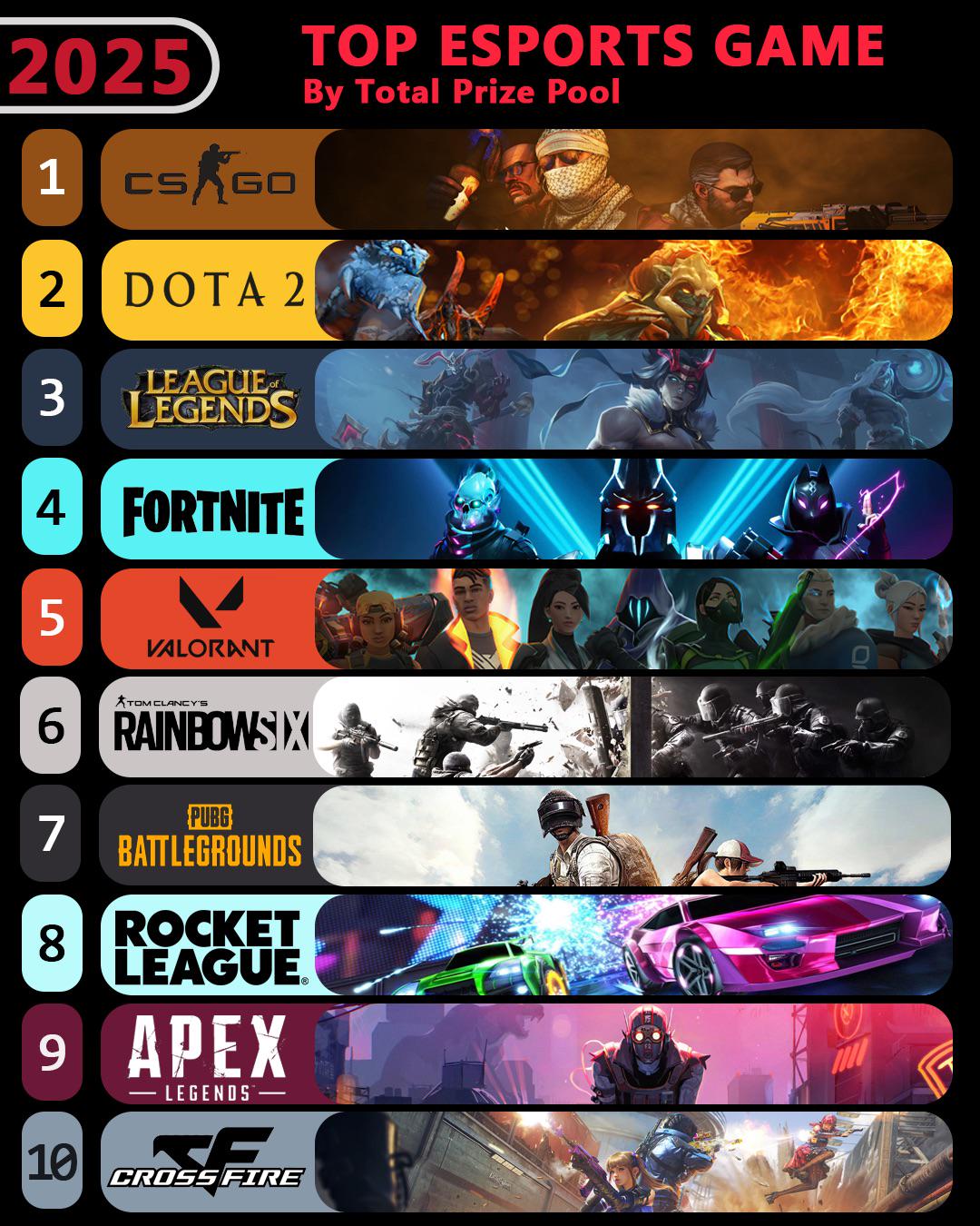 2025年のeスポーツ賞金ランキングが公開されたんだけど、Apexは9位だった。
