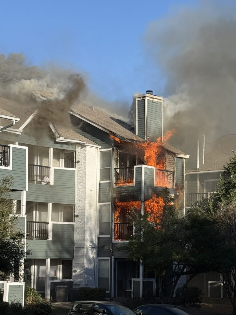 「右上のアパートが俺のだった。下の階のユニットがやらかして、俺の命を危険にさらした。身につけていた服以外、文字通りすべてが無くなったと確認された。すべてだ。