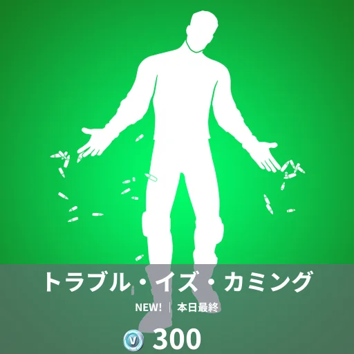 本日のアイテムショップにPUMAの新シューズと新エモートが出ています。特に新エモートのトラブル・イズ・カミングは1日限定です。翌日の9時までの販売となっています。