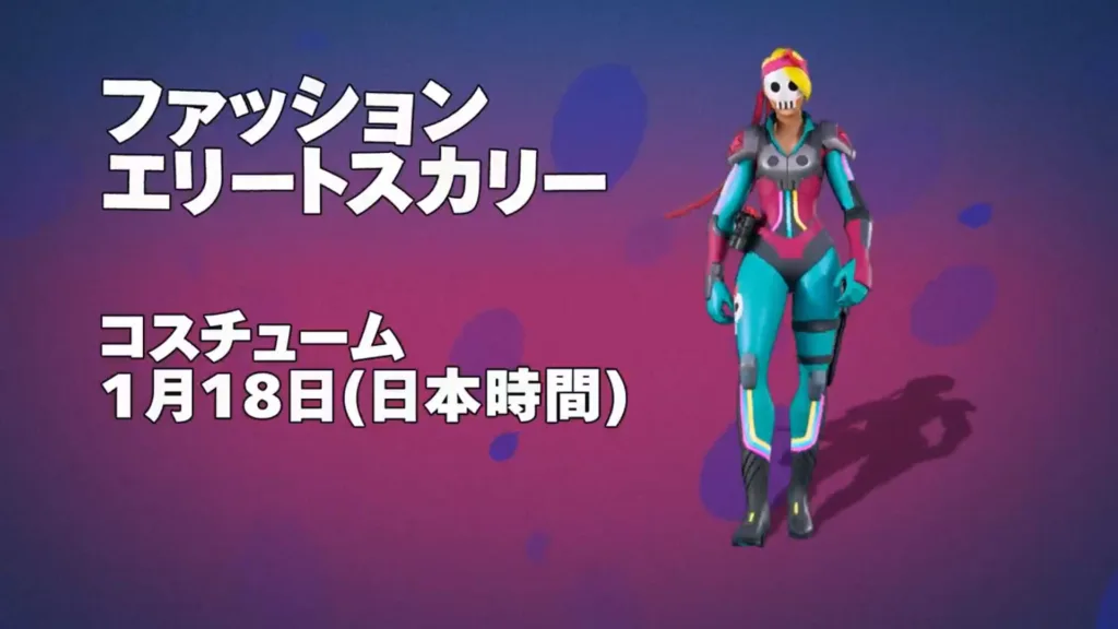 1月18日には、人気コスチュームのファッションエリートスカリーが販売予定です。スタイリッシュなデザインで、再販を待っていたプレイヤーも多いのではないでしょうか。