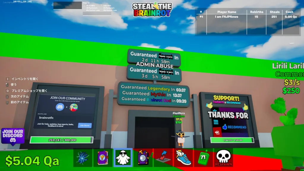 そんな「ブレインロットを盗む(STEAL THE BRAINROT)」ですが、日本時間の1月18日午前4時20分と1月18日22時20分から管理者イベントが開催されます。今回のイベントでは、通常のプレイでは体験できない特別な仕組みや報酬が用意されており、多くのプレイヤーが参加を楽しみにしています。