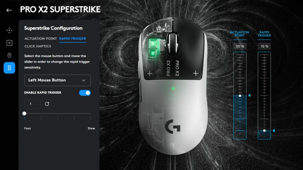 新開発の「ハプティック誘導トリガーシステム(HITS)」により、マウスのクリック設定が驚くほど細分化されました。