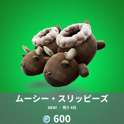 本日のアイテムショップには新しいシューズが2種類登場!1つ目はVansから残りはフォートナイトオリジナルです。モチーフはヘラジカだと考えられます。目がくりっとしていて可愛らしい表情を見せてくれます。