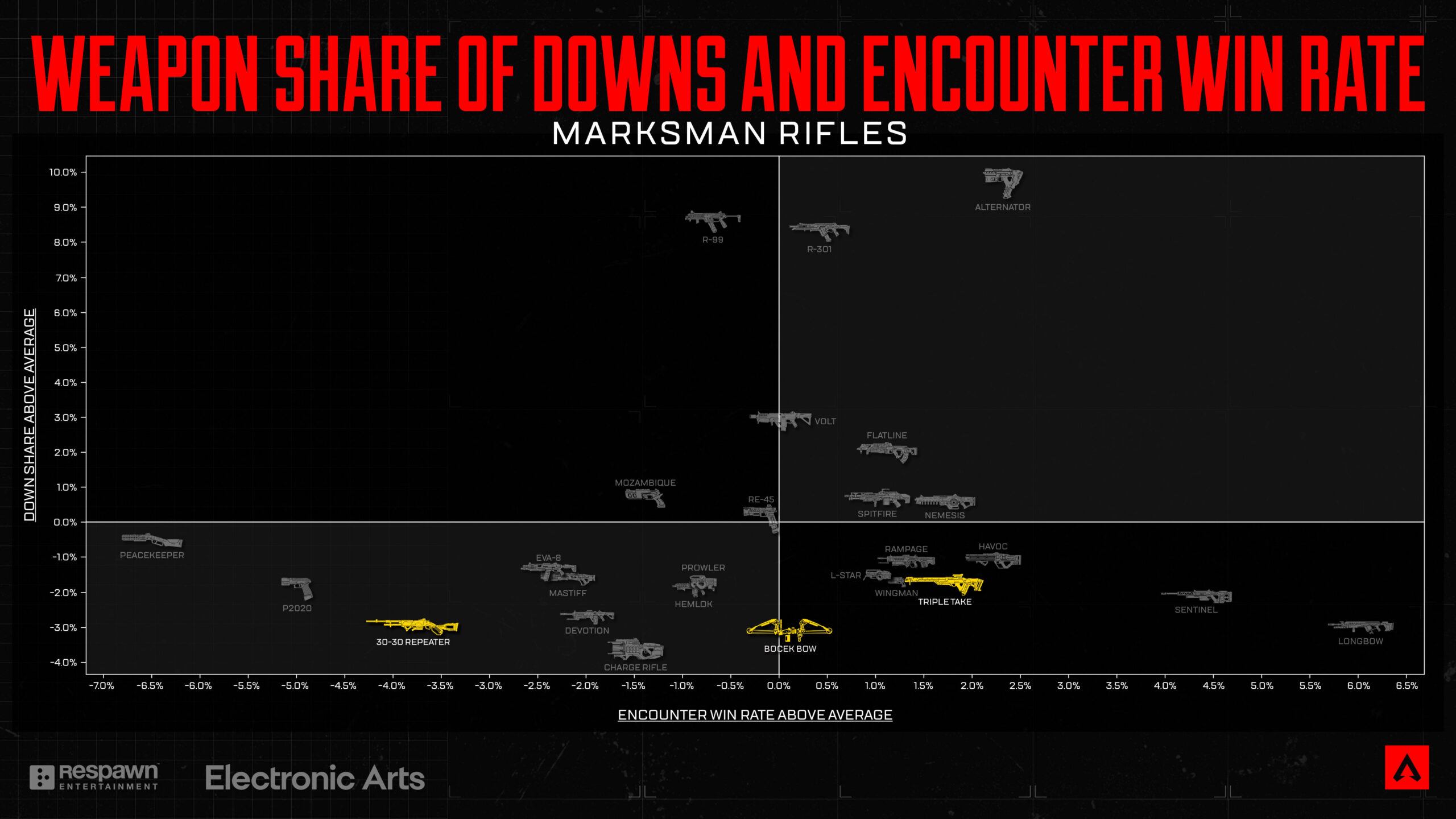 以前から追っている方ならご存知の通り、私たちは遠距離のマークスマン主体のメタから、より近接戦闘中心のメタへの移行に取り組んできました。マークスマン武器の支配力がついに低下し、結果として他の武器タイプの生存力が回復していることを報告できて嬉しく思います。