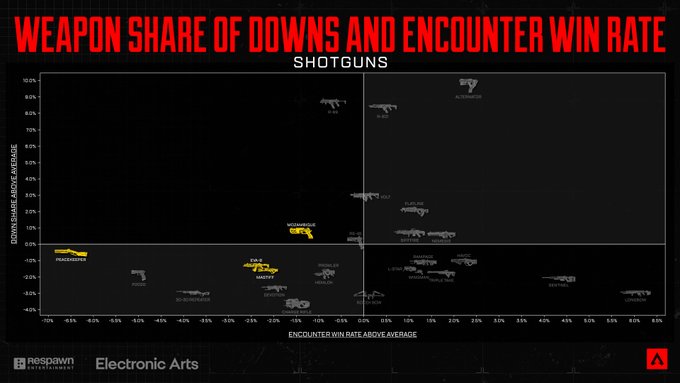 この進展には満足していますが、他の武器と比較すると依然としてグラフ上では低い位置にあります。ショットガンの強さと人気が支配するメタは多くのプレイヤーの不満につながる可能性があることを承知しているため、慎重に状況を監視し続けます。