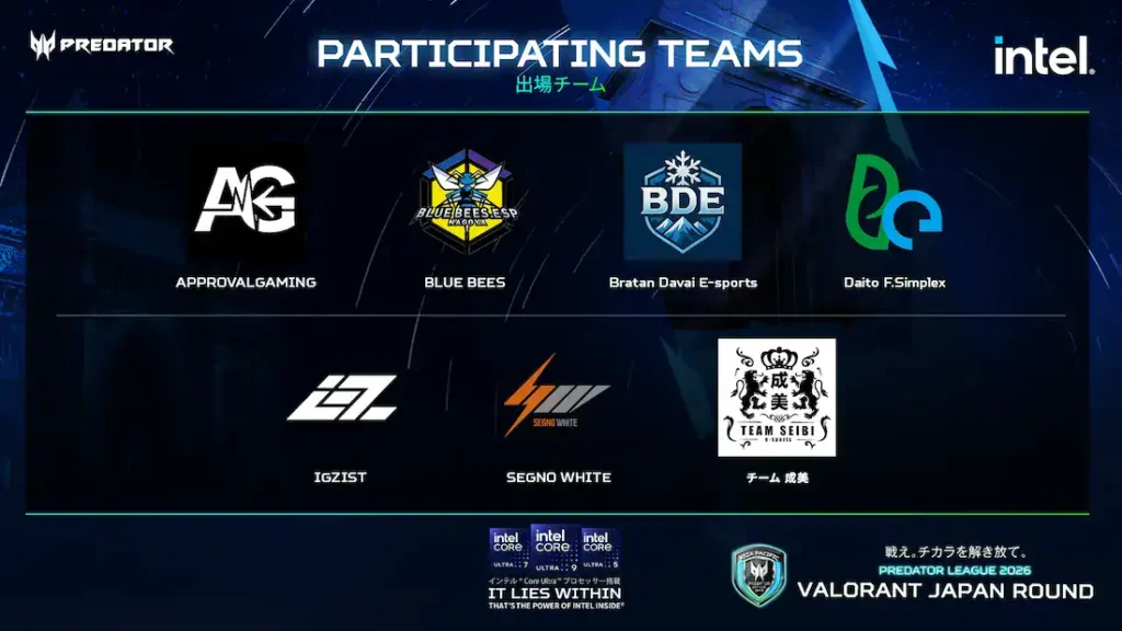 賞金総額100万円「Predator League 2026 VALORANT Japan Round」の出場チームが発表、BLUE BEESやIGZISTなど計7チームが参戦