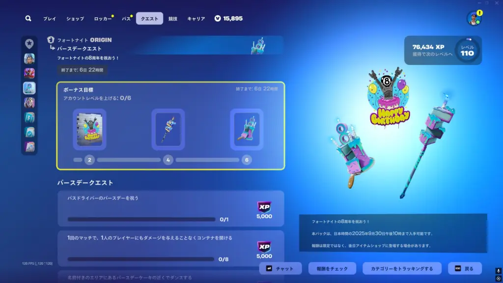 【フォートナイト】8周年記念バースデーイベントが開幕!レベルを上げることで無料報酬が獲得可能