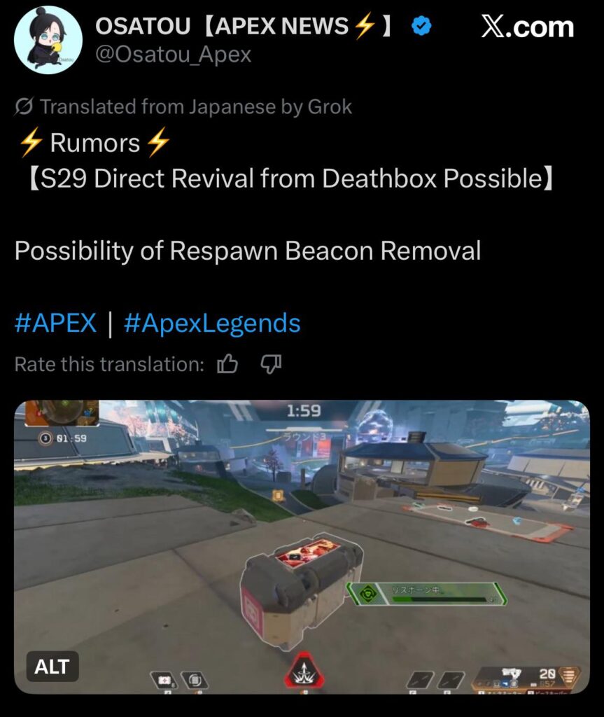 【Apex】次シーズン、リスポーンビーコン廃止で「〇〇から復活」の噂に賛否の声