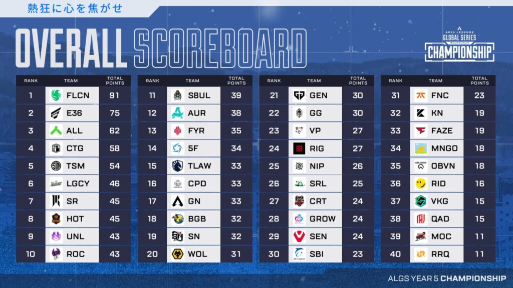 【APEX】Falconsが1位、E36とUNLIMITと検討!