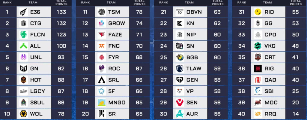 【APEX】ALGS札幌CHAMPIONSHIP DAY1終了時の順位