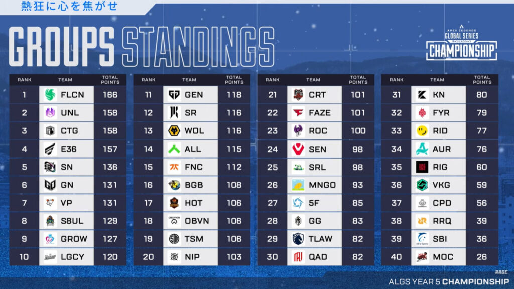 【Apex】ALGS チャンピオンシップ、グループステージが終了 ←CRT惜しすぎだろ・・・