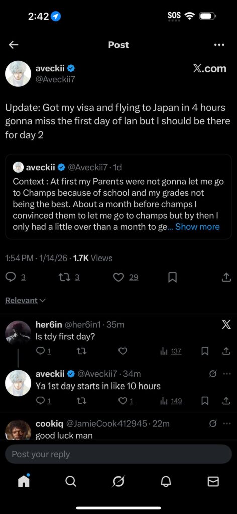 【Apex】最年少16歳プロゲーマーが親の反対を乗り越えてギリギリでビザ取得、世界大会出場へ。現在フライト中