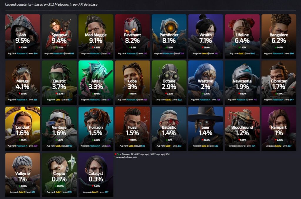 【Apex】スパローがピック率トップに、アッシュナーフ後の新環境で次のナーフ対象が確定…?