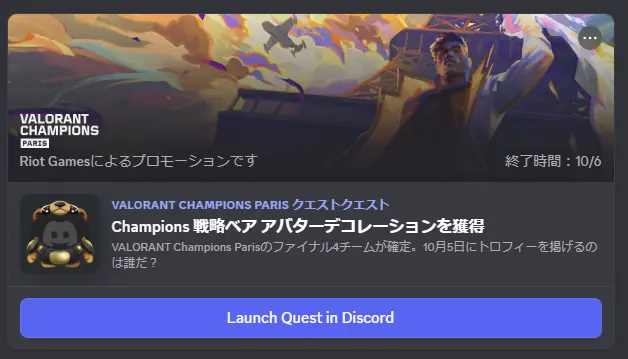 『VALORANT X Discord』Discordクエストをクリアして、「Champions 戦略ベア」アバターデコレーションをゲットしよう!