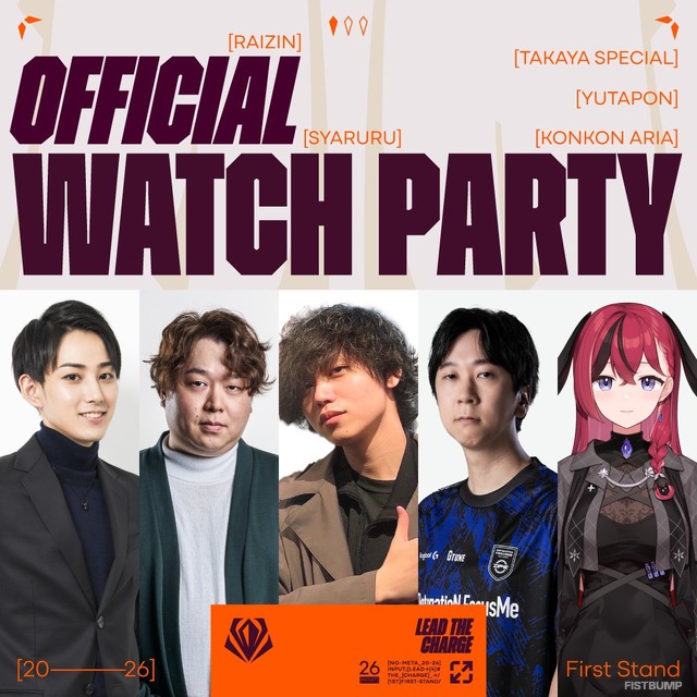 らいじん、しゃるる、たかスペ、Yutapon、昏昏アリアと『LoL』国際大会を楽しもう―「First Stand 2026」ウォチパ実施ストリーマーが発表