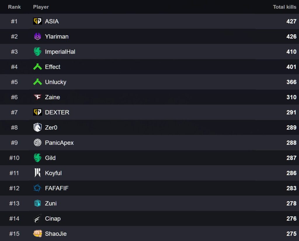 【Apex】ALGS Year 5全体を通してのキルリーダーボードが公開