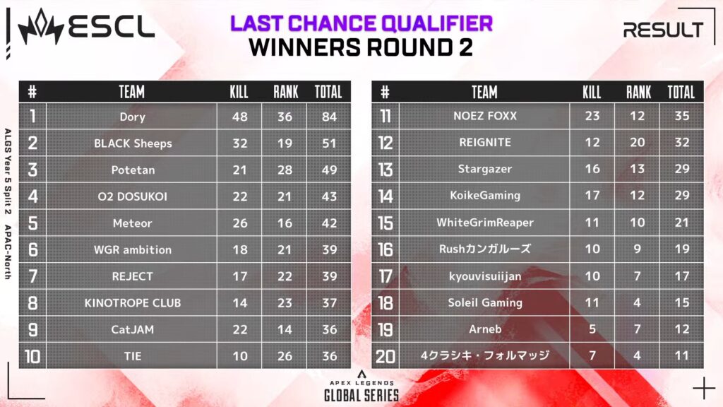 【APEX】LCQ Eimination R1でALGS OPEN進出のTribiTY敗退 R2で明日の決勝進出チームが確定